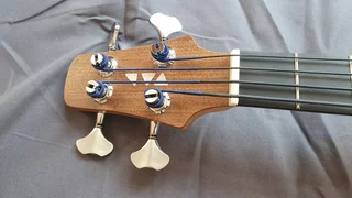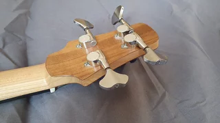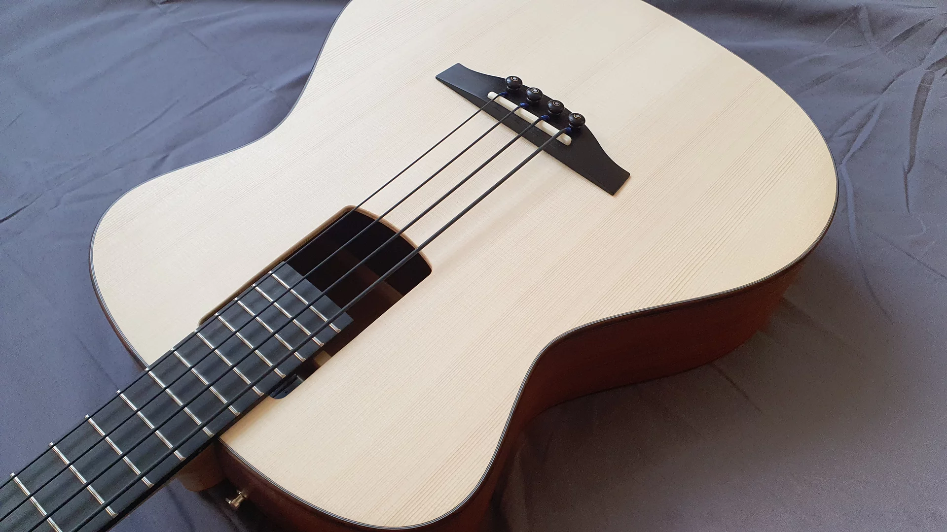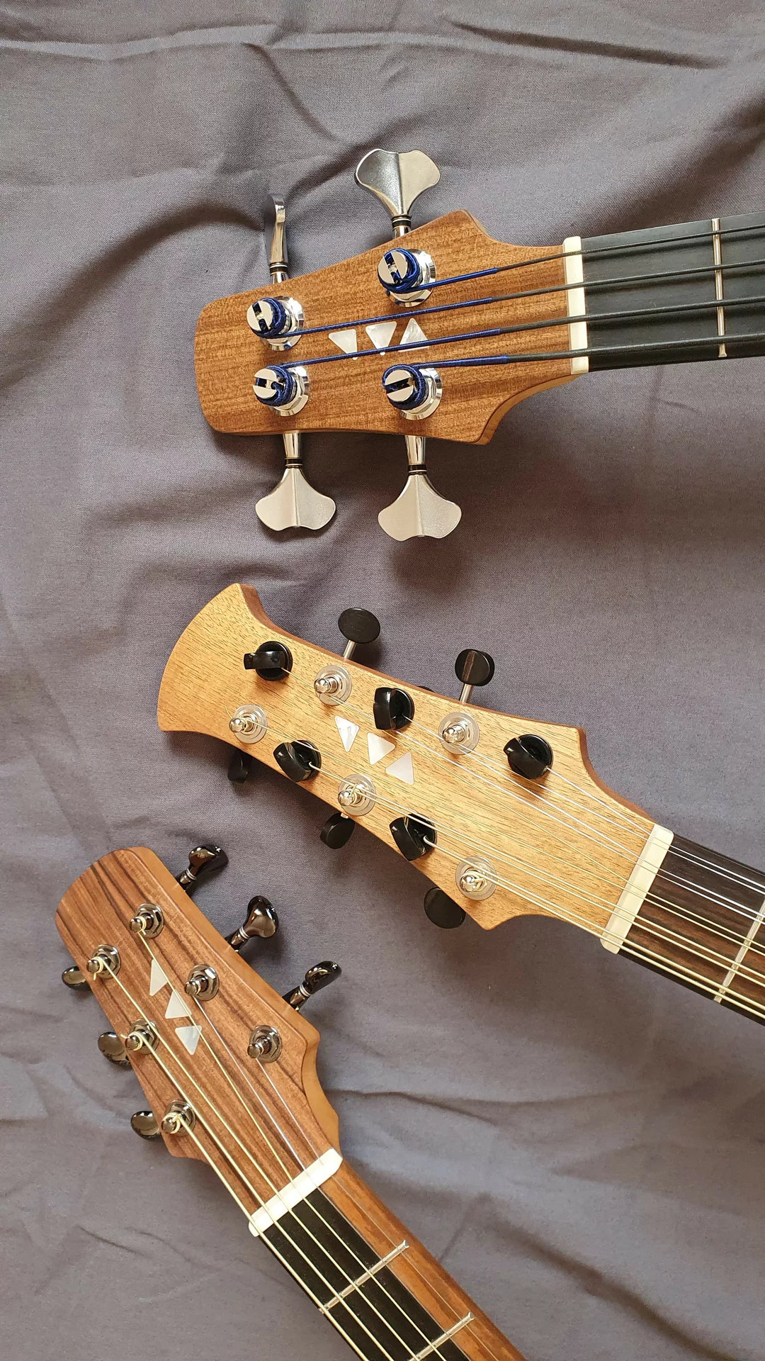 Aktuell verfügbar: Akustikbass, Shortscale. Korpus aus Afromarsia, Decke Alpenfichte, Hals Kirsche/ Halsübergang 16. Bund, Sattelbreite 43mm/ Mensur 755mm/ Sideclose-Griffbrett & Edelstahlbünde/ Ränder Palisander mit Zierspänen zu Zargen, Boden und Decke/ Sattel und Stegeinlage Knochen/ Mechaniken Gotoh RES-O-LITE/ Stegpins aus Ebenholz mit Auge und Einfassung/ Steg und Griffbrett aus Ebenholz/ Besonderheit: Eckiges Schalloch/ Preis: 4500.- € (Tonabnehmer inbegriffen, verbaut ist ein Rösner DOT)