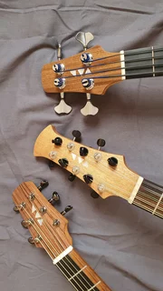 Aktuell verfügbar: Model A - Spitzname "Wurzel". Korpus aus Palisander, Decke Zeder, Hals Mahagony/ Korpusform OM-Größe/ Halsübergang 14. Bund, Sattelbreite 46mm/ Mensur 648mm/ Sideclose-Griffbrett & Edelstahlbünde/ Ränder Palisander mit Zierspänen zu Zargen, Boden und Decke/ Sattel und Stegeinlage Knochen/ Mechaniken Gotoh (18:1) mit Griffen aus Palisander/ Stegpins aus Ebenholz/ Steg und Griffbrett aus Ebenholz/ Besonderheit: Eckiges Schalloch/ Preis: 3400.- €