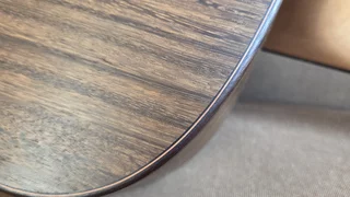 Modell A – “Crème brûlée" (die Fotos haben einen kühlen Farbstich, in der Realität ist die Färbung deutlich wärmer! - sieheVideo) / Korpus aus Mahagoni (Pomele), Decke Alpenfichte, Hals Kirsche/ Korpusform OM-Größe/ Halsübergang 14. Bund, Sattelbreite 46,7mm/ Mensur 648mm/ Sideclose-Griffbrett & Edelstahlbünde/ Ränder Palisander mit Zierspänen zu Zargen, Boden und Decke/ Sattel und Stegeinlage Knochen/ Mechaniken Gotoh (18:1) mit Griffen aus künstlichem Elfenbein/ Stegpins aus künstlichem Elfenbein/ Steg und Griffbrett aus Zwetschge/ Besonderheit: Eckiges Schalloch/ Preis: 3500.- Euro